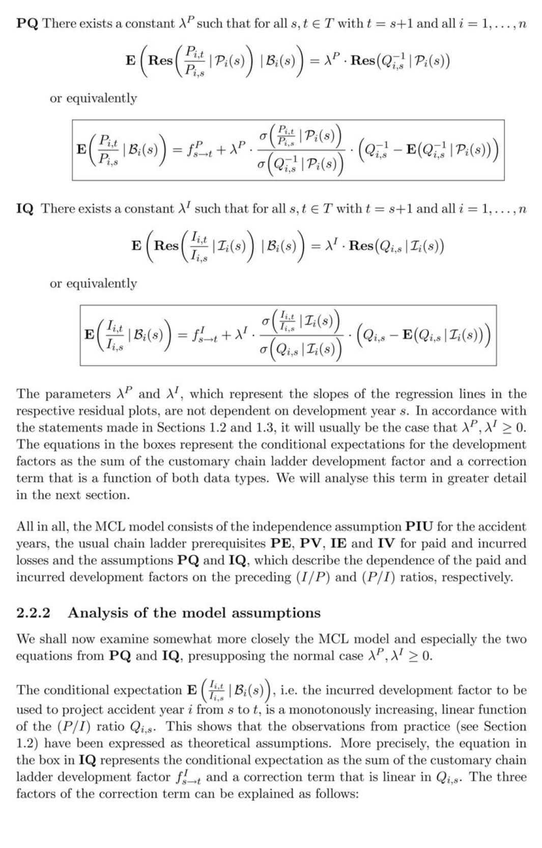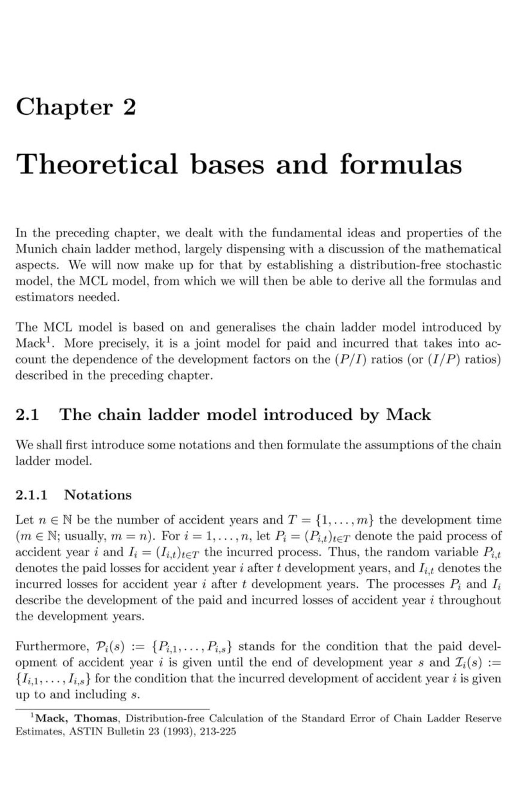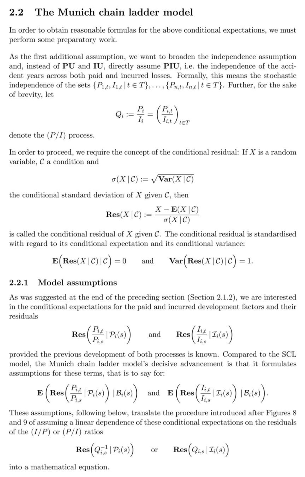 “Munich Chain Ladder” by Dr. Quarg and Dr. Mack is being reprinted in Variance to give this important paper wider visibility within the actuarial community. The editors of Variance invited the authors to submit their paper for republication because we believe that the techniques described in their work should be known to all actuaries doing reserve analysis. We also hope to stimulate further research in this area. This paper is reprinted from Blätter der Deutschen Gesellschaft für Versicherungsund Finanzmathematik, volume 26, number 4, 2004, pages 597–630. We thank the editors of that journal and the authors for allowing Variance to publish the paper.