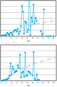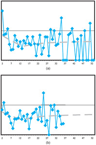 • Figure 11. Ratio of blended results to case estimates for L = 0 (left graph) and L = 1 (right graph)